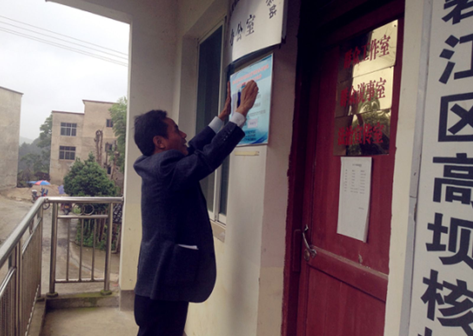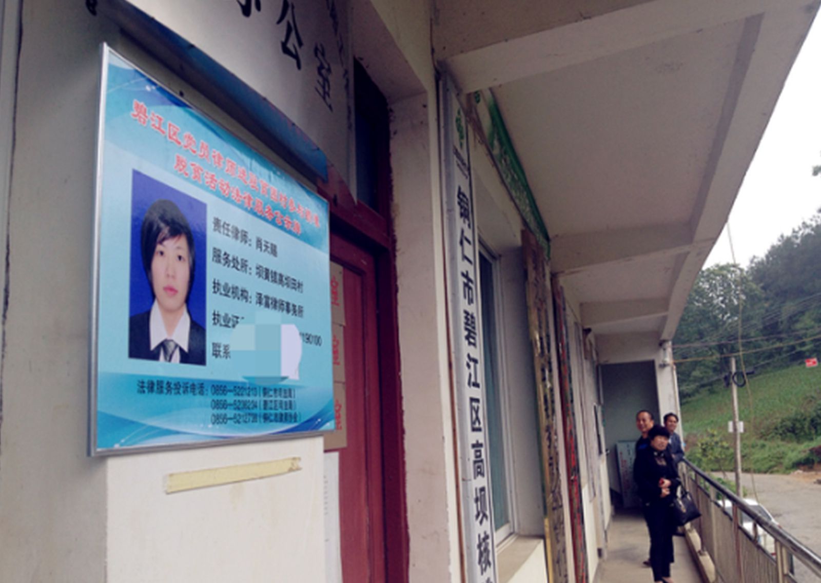 2016年5月25日“双千双助”活动中,区司法局陈昌来科长到坝黄镇高坝田村为肖天赐律师挂牌。